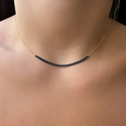 Delicado collar tipo gargantilla de cadena de laminado en oro con pequeñas perlas cultivadas