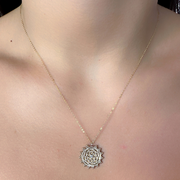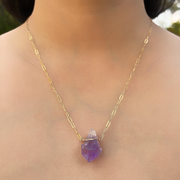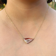 Hermosa pieza de cuarzo con incrustaciones de minerales, montada en oro de 14 quilates