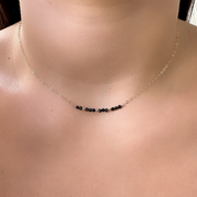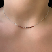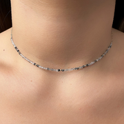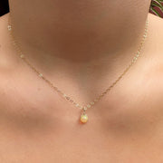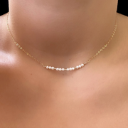 Delicado collar tipo gargantilla de cadena de laminado en oro con pequeñas perlas cultivadas