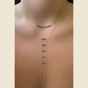 Delicado collar tipo gargantilla de cadena de laminado en oro con pequeñas perlas cultivadas